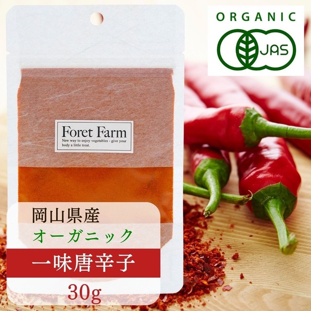 岡山県 有機JAS 一味唐辛子 パウダー 30g