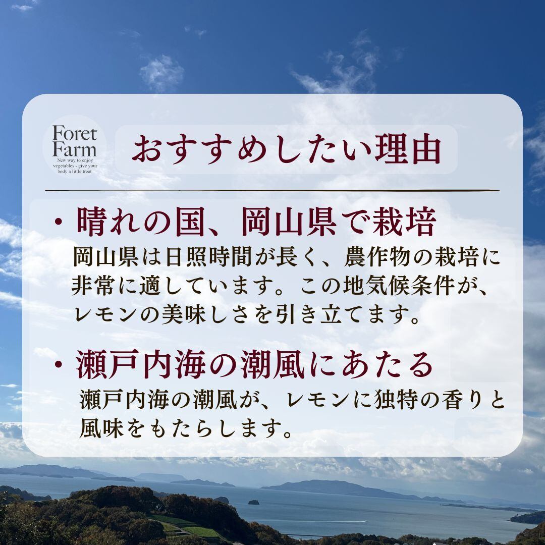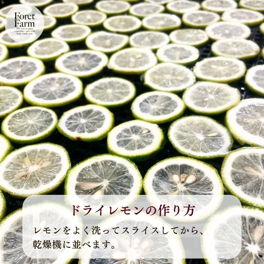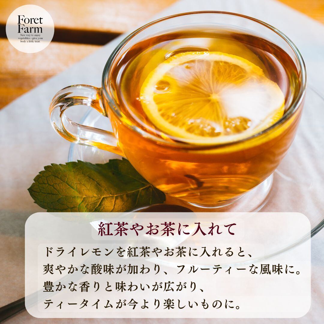 「Foret Farmのドライレモン - 自然の爽やかさをそのままに」 Foret Farmのドライレモンは、太陽の恵みをたっぷり浴びたレモンを丁寧に乾燥させた、一年中楽しめるヘルシーな食材です。栽培期間中無農薬のレモンを使用し、安心してお召し上がりいただけます。ビタミンCやクエン酸が豊富で、免疫力アップや美肌効果が期待できます。
