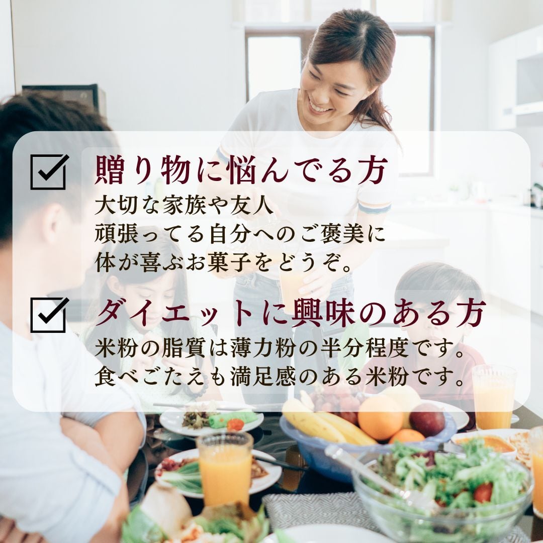 この商品は、スタンダードな米粉のフロランタンで4枚セットをお届けします。個包装になっているため、シェアにも便利です。