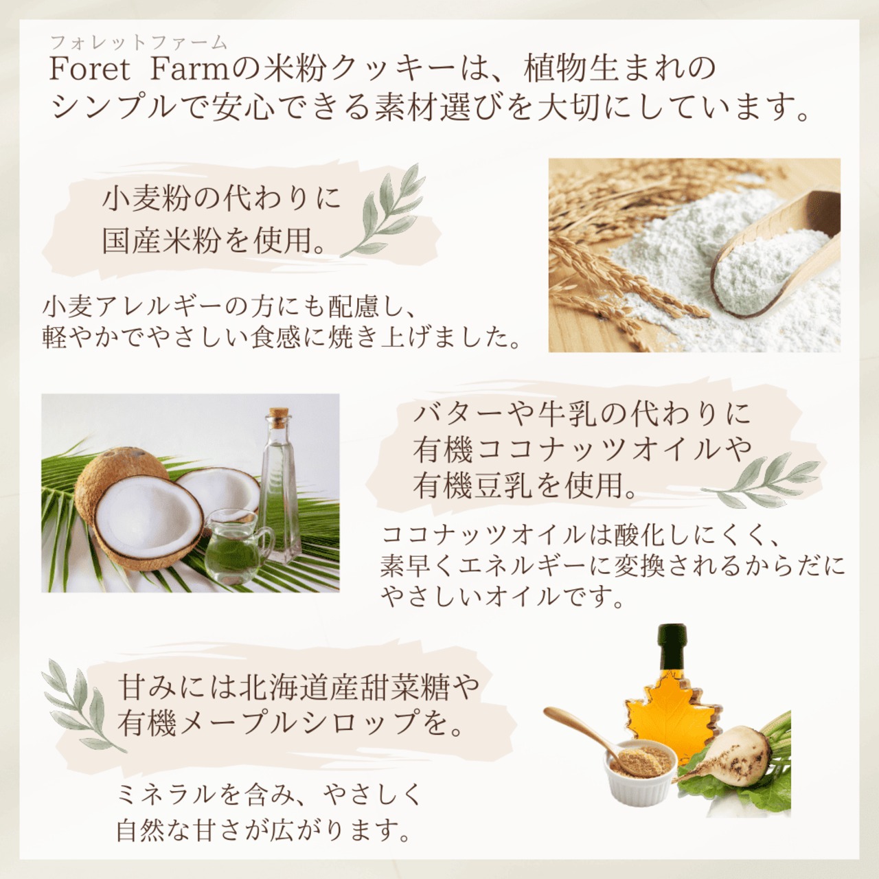 ⚫︎原材料名|国産米粉,有機ココナッツオイル,甜菜糖(北海道産),アーモンド,有機メープルシロップ,天日塩