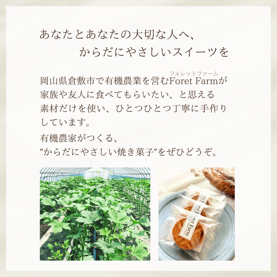 有機・国産・無添加の素材を大切に選び、ひとつひとつ丁寧に焼き上げています。