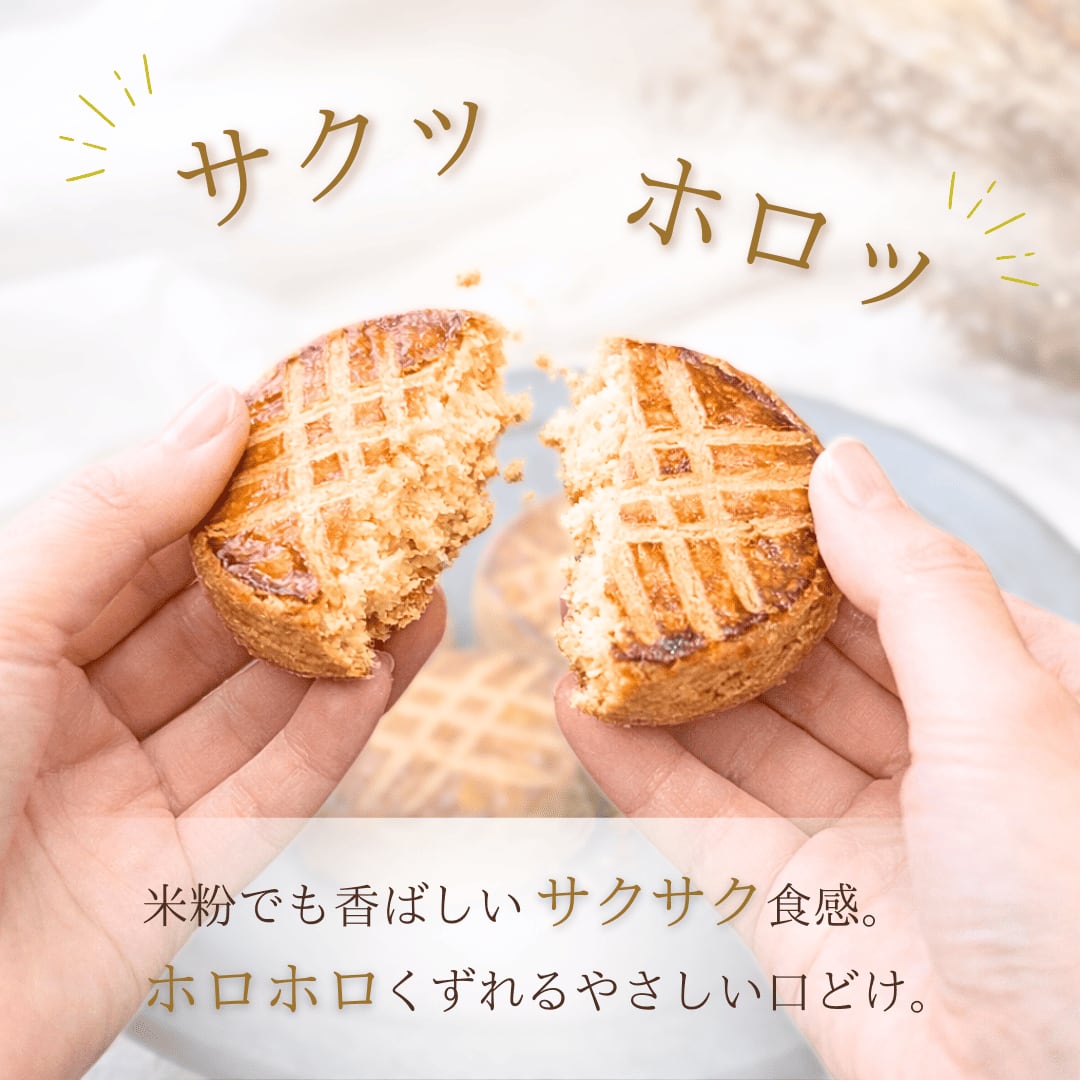 卵・乳製品・小麦粉・白砂糖・動物性材料を使用しない、グルテンフリークッキー&ヴィーガンクッキーとしてお楽しみいただける、からだにやさしい米粉スイーツに仕上げました。