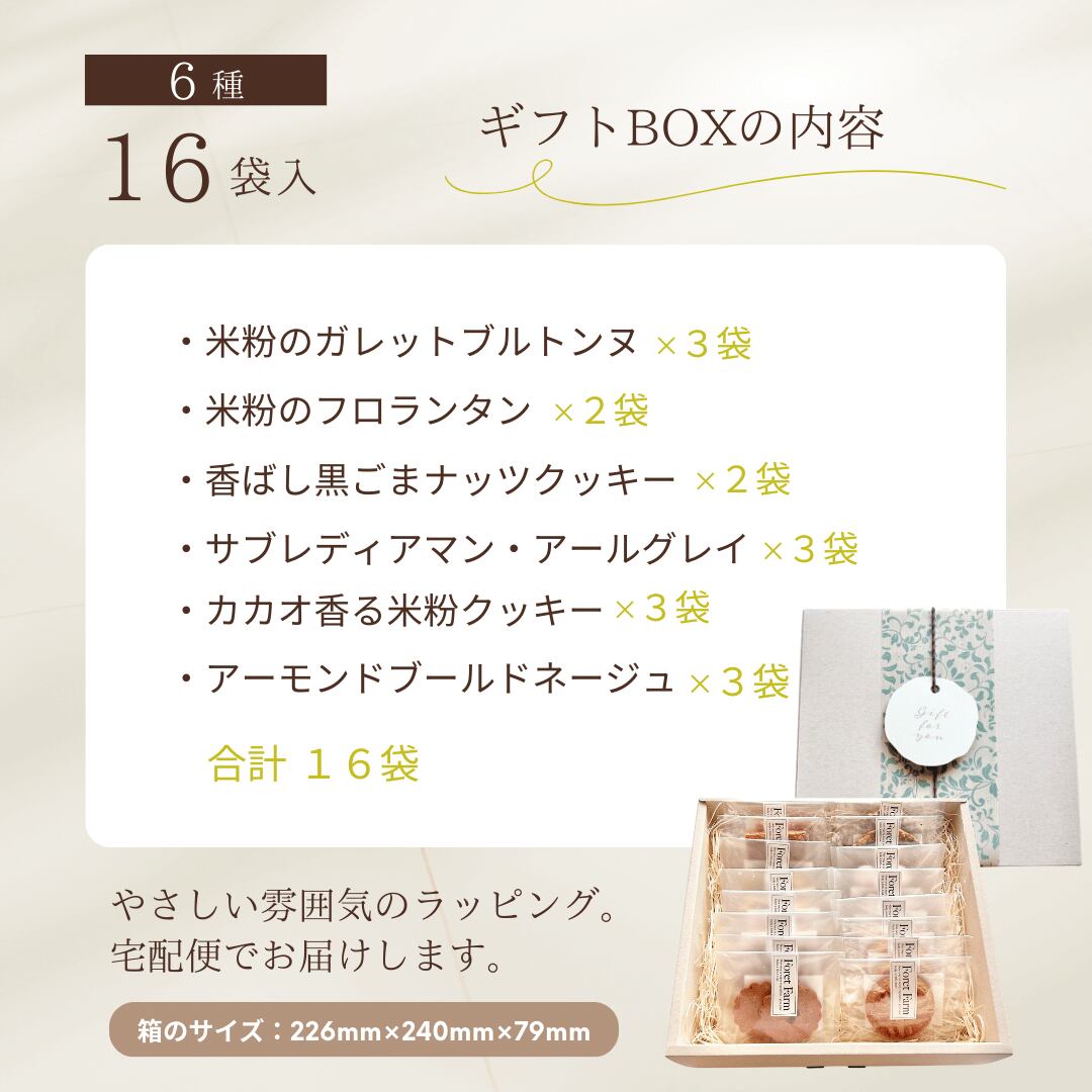 【米粉クッキー6種 詰合せ(16袋入・ギフトBOX・個包装・送料無料)】