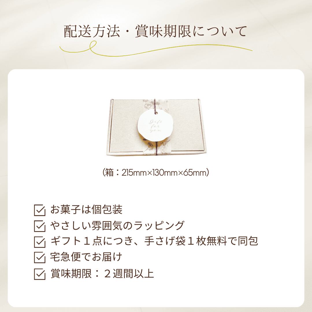 ⚫︎ギフトBOXは、やさしい雰囲気のラッピングでお届けします。