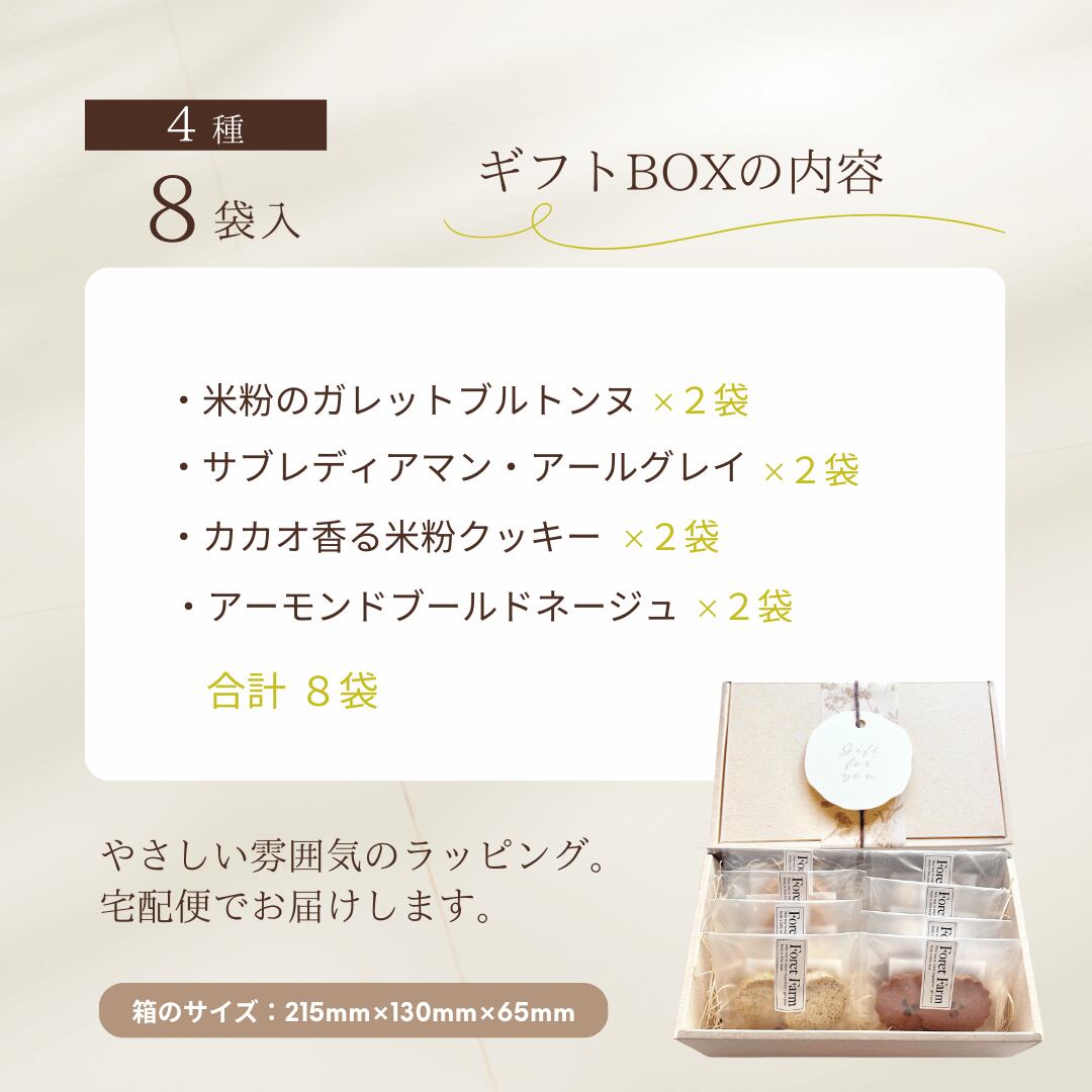 【米粉クッキー4種 詰合せ(8袋入・ギフトBOX・送料無料・個包装)】