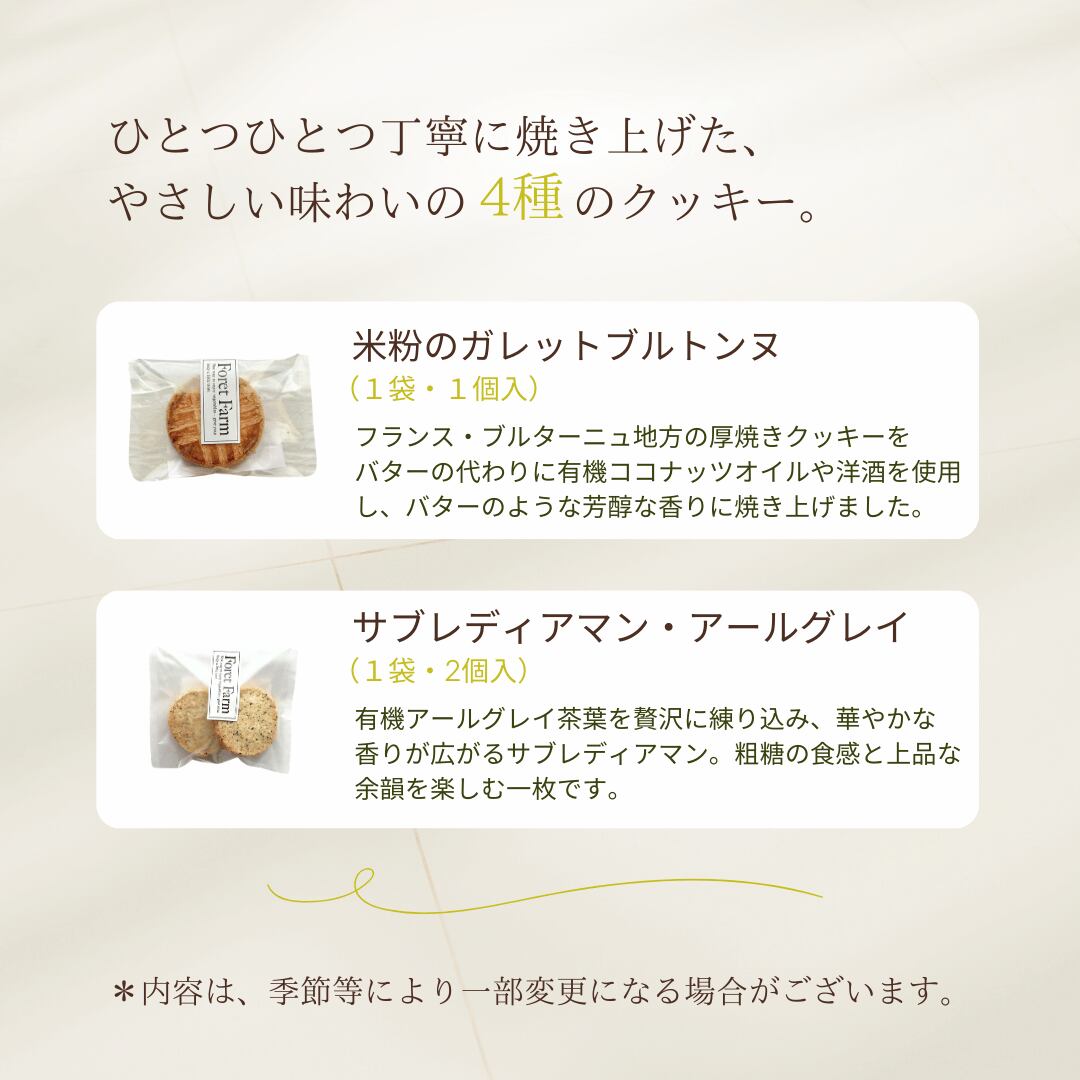 4種類の米粉クッキーを少しずつ楽しめる、グルテンフリークッキーの食べ比べセットです。